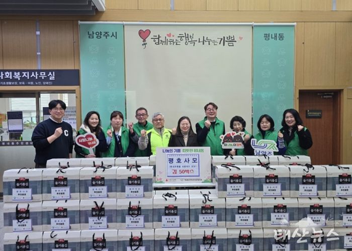 태산뉴스 이동욱 기자 | 남양주시는 지난 5일 평내호평을 사랑하는 모임이 설 명절을 맞아 김 선물세트 50박스를 평내동 지역사회보장협의체에 기탁했다고 6일 밝혔다.