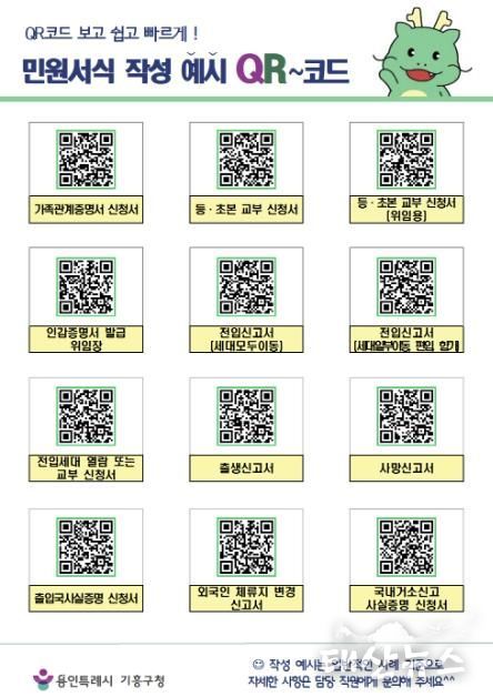 QR코드는 기흥구청 민원지적과와 기흥구 내 15개 동 행정복지센터 민원실에 게시됐다.