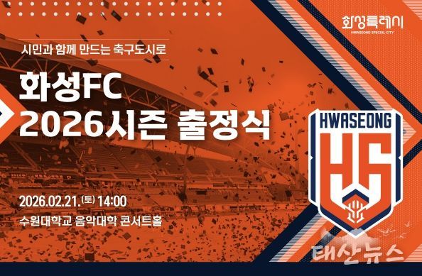 태산뉴스 이지율 기자 | 화성FC가 오는 2월 21일 오후 2시, 수원대학교 음악대학 콘서트홀에서 ‘2026 화성FC 출정식’을 개최하고 2026시즌의 본격적인 출발을 알린다.