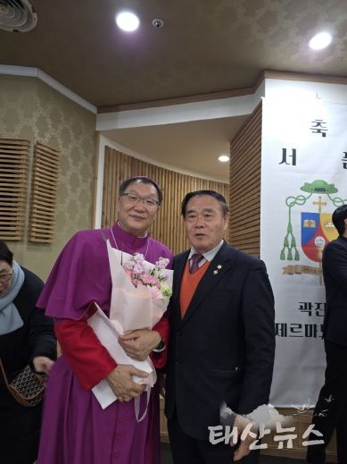 태산뉴스 이동욱 기자 | 수원특례시의회 이재식 의장은 2월 11일(수) 오후 2시, 장안구 정자동 주교좌성당에서 열린 천주교 수원교구 곽진상 제르마노 주교 서품식에 참석해 신임 보좌주교의 서품을 축하했다.