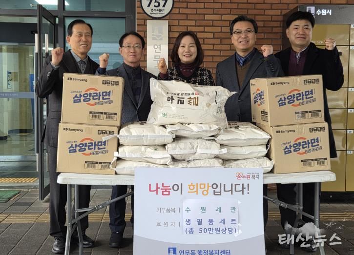 태산뉴스 이동욱 기자 | 수원시 장안구 연무동 행정복지센터는 11일, 민족 고유의 명절 설을 앞두고 수원세관과 한국관세사회 수원지부로부터 지역 내 어려운 이웃을 위한 따뜻한 후원의 손길이 이어졌다고 밝혔다.
