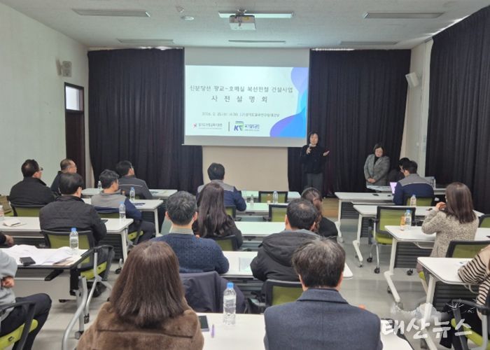 태산뉴스 이동욱 기자 | 경기도수원교육지원청은 신분당선 광교–호매실 복선전철 공사 추진에 앞서 2월 25일 국가철도공단과 함께 공사 구간 100m 이내에 위치한 5개 인접학교를 대상으로 사전설명회를 실시했다고 밝혔다.