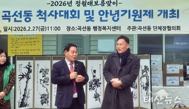 태산뉴스 이동욱 기자 | 수원특례시의회는 2월 27일 곡선동 행정복지센터에서 열린 정월대보름 척사대회에 참석해 주민들과 함께 한 해의 건강과 풍요를 기원했다. 이날 행사에는 기획경제위원회 장정희 위원장(더불어민주당, 권선2·곡선), 도시미래위원회 이찬용 위원장(국민의힘, 권선2·곡선)도 함께했다.
