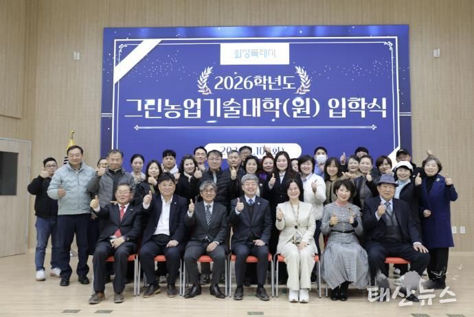 태산뉴스 이동욱 기자 | 화성특례시는 10일 농업기술센터 강당에서 지역 농업의 경쟁력을 강화하고 농업인들의 실질적인 역량 향상을 돕기 위한 ‘2026학년도 제19기 화성특례시 그린농업기술대학(원) 입학식’을 개최했다.