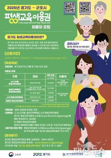 태산뉴스 이동욱 기자 | 군포시가 시민들의 자기계발 기회를 확대하고 학습 격차를 해소하기 위해 ‘2026년 제1차 평생교육이용권 지원사업’ 대상자를 모집한다고 밝혔다.