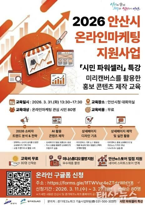 태산뉴스 이동욱 기자 | 안산시는 급변하는 디지털 유통 환경에 대응해 시민들의 온라인 마케팅 역량 강화를 위한 ‘시민 파워셀러 특강’ 교육생을 모집한다고 12일 밝혔다.