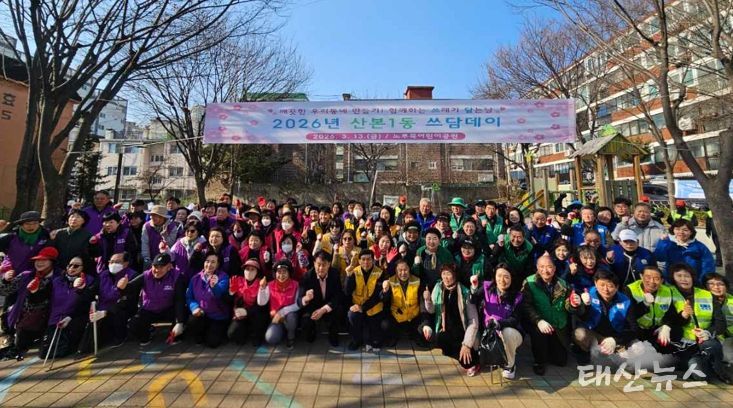 태산뉴스 이동욱 기자 | 군포시 산본1동은 이달 13일 봄을 맞아 쾌적한 마을 환경을 조성하기 위해 주민들과 함께하는 환경정화활동인 “2026년 새봄맞이 쓰담데이(쓰레기 담는 날)”를 실시했다.