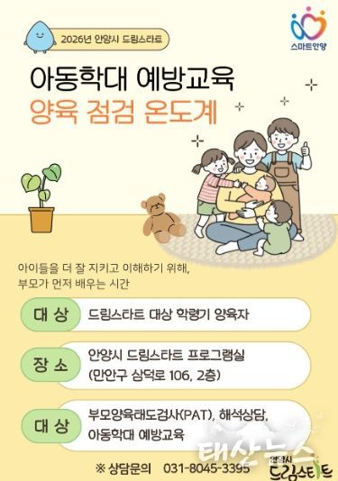 태산뉴스 이동욱 기자 | 안양시가 아동 학대를 사전에 차단하고 건강한 양육 환경을 조성하기 위해 맞춤형 부모 교육 프로그램인 ‘2026 드림스타트 양육 점검 온도계’를 본격 가동한다고 18일 밝혔다.