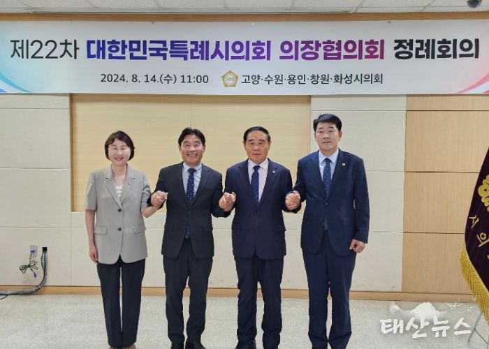 태산뉴스 이지율 기자 | 화성시의회 배정수 의장은 8월 14일, 고양시 인재교육원에서 개최된 제22차 대한민국 특례시의회 의장협의회 정례회의에 참석했다.