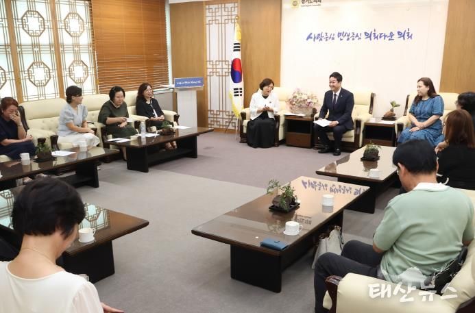 태산뉴스 이지율 기자 | 김진경 경기도의회 의장(더민주, 시흥3)이 22일 의장 접견실에서 경기도어린이집연합회 관계자들을 접견했다.