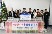 태산뉴스 이동욱 기자 | 지난 10일, 수원시 영통구 매여울회에서 관내 어려운 이웃을 돕기 위해 컵라면 200박스를 기부했다. 수원시 영통구 매탄동 소재 공인중개사 모임인 매여울회는 매년 꾸준히 지역사회의 어려운 이웃을 위해 물품을 지원하며 따뜻한 나눔을 실천하고 있다. 이날 전달된 물품은 기부자의 뜻에 따라 관내 도움이 필요한 취약계층 세대에게 배부될 예정이다. 매여울회 관계자는 "한 해를 따뜻한 나눔 활동으로 마무리할 수 있어 매우 뜻깊다”며 “추운 겨울, 컵라면의 온기처럼 어려운 이웃들에게 조금이나마 도움이 되기를 바란다”고 전했다. 장수석 영통구청장은 "지속적인 나눔을 실천해 주시는 분들의 마음에 진심으로 감사드린다”며 “기부해 주신 물품은 도움이 필요한 복지 사각지대의 이웃에게 잘 전달하겠다”고 말했다.