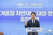 태산뉴스 이동욱 기자 | 광명시가 심화하는 기후변화에 따른 폭설과 한파에 선제적으로 대응하기 위한 종합대책을 가동한다. 시는 10일 시청 중회의실에서 ‘2025년 겨울철 자연재난(대설·한파) 종합대책’을 주제로 정책브리핑을 열고, 예방, 대비, 대응 3단계 체계를 중심으로 겨울철 재난관리 종합대책을 설명했다. 박광희 안전건설교통국장은 “기후위기 시대에는 예측 가능한 대응보다 과잉대응이 시민의 생명을 지키는 길”이라며 “예측할 수 없는 재난에도 즉시 대응할 수 있도록 24시간 재난 대비체계를 가동하고, 현장 중심의 신속하고 과감한 조치를 통해 시민이 안심하고 생활할 수 있도록 최선을 다하겠다”고 말했다. 이상기후로 인한 폭설·한파가 반복될 가능성이 높아진 만큼, 예방·대비·대응의 전 과정에서 더욱 정밀하고 적극적인 대책을 추진해 시민이 안심할 수 있는 겨울을 만드는 데 총력을 기울이고 있다. 폭설에도 끄떡없도록… 예방, 대비, 대응의 3단계 체계 전면 강화 광명시는 빈틈없는 폭설 재난관리를 위한 예방, 대비, 대응의 3단계 체계를 전면 강화했다. 우선 겨울철 재해 취약성을 선