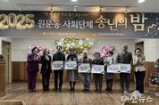 태산뉴스 이동욱 기자 | 과천시 원문동은 지난 9일 ‘2025 원문동 사회단체 합동 송년의 밤’을 개최하고, 한 해를 돌아보며 지역 발전을 위해 힘쓴 주민들의 노고를 격려하는 시간을 가졌다. 또한 지역사회 나눔 문화 확산을 위한 기부금 전달식도 함께 진행되어 그 의미를 더했다. 이날 송년회에서는 원문동 부녀회가 100만 원, 통장단·주민자치위원회·체육회가 각 30만 원, 지역사회보장협의체·새마을지도자협회가 각 20만 원을 기부해, 총 230만 원이 어려운 이웃을 돕는 데 사용되도록 원문동 지역사회보장협의체에 전달됐다. 기부금은 사회복지공동모금회를 통해 지정 기탁되며, 원문동 내 기초생활보장 수급자, 차상위계층, 홀로 어르신 등 취약계층의 지원사업에 사용될 예정이다. 박병준 원문동 지역사회보장협의체 위원장은 “한파 속에서도 따뜻한 마음을 모아주신 사회단체 회원분들께 깊이 감사드린다”라며, “이번 기부가 지역사회에 희망을 전하며 지속 가능한 나눔 실천으로 이어지길 기대한다”라고 말했다. 윤인혜 원문동장은 “어려운 경제 상황에도 나눔과 기부를 통해 지역사회에 공헌하신 분들께 깊은 감사의 말씀을 드린다”라