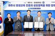 태산뉴스 이동욱 기자 | 파주시는 지난 11일 연세대학교 미래교육원과 ‘일생일대 프로젝트’의 공동 기획·운영을 위한 평생교육 진흥 업무협약(MOU)을 체결하고, 2026년 사업 확대를 위한 협력 체계를 본격 가동했다. 이번 협약은 파주시의 대표적인 대학 연계 평생학습 사업인 ‘일생일대 프로젝트’를 보다 체계적이고 지속 가능하게 추진하기 위한 협력 기반을 마련하기 위한 것으로, 시민 생활권 내에서 명문 대학의 고품격 교육을 누릴 수 있는 학습 환경 조성을 목표로 한다. ‘일생일대 프로젝트’는 하나의 읍면동 평생학습센터와 하나의 대학을 1대 1로 연계해, 시민들에게 생활권 내 학습 기회를 제공하는 경기도 최초의 파주형 평생학습 모델이다. 연세대학교(미래교육원)은 이번 협약을 통해 대학이 보유한 전문성과 교육 자원을 활용해 파주시민을 위한 특화 교육과정을 설계·운영할 예정이다. 이날 협약식에서 오석영 연세대학교 미래교육원장은 “연세대학교 미래교육원은 지역사회와 함께하는 평생교육을 꾸준히 실천해 왔다”라며 “이번 협약을 통해 파주 시민에게 실질적이고 의미 있는 학습 기회를 제공하고, 대학이 가진 지식과 인적 자원을 나