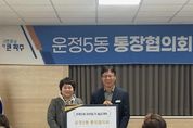 태산뉴스 이동욱 기자 | 파주시 운정5동 통장협의회는 지난 11일 운정5동 행정복지센터를 방문해 이웃 돕기 성금 200만 원을 기탁하며 따뜻한 연말 나눔을 이어갔다고 전했다. 운정5동 통장협의회는 올해 5월, 영남 지역 산불 피해 복구 지원을 위해 성금을 전달한 데 이어, 연말에도 지역 취약계층을 위한 성금을 마련하며 지속적으로 나눔 활동을 실천하고 있다. 이번 기탁 성금은 겨울철 한파와 생활고로 어려움을 겪는 가구에게 실질적인 도움이 될 수 있도록 복지사업에 활용될 예정이다. 반은주 운정5동 통장협의회장은 “회원들이 함께 뜻을 모아 마련한 성금이 어려운 이웃에게 작은 힘이 되길 바란다”라고 말했다. 이창훈 운정5동장은 “통장협의회의 꾸준한 나눔 실천이 지역사회를 더욱 따뜻하게 만들고 있다”라며 “기탁된 성금은 겨울철 어려움을 겪는 가구에 온기를 전하는 데 도움이 되도록 하겠다”라고 전했다.