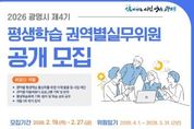 태산뉴스 이동욱 기자 | 광명시가 시민 주도의 생활권 중심 평생학습 정책을 강화하기 위해 ‘제4기 평생학습 권역별실무위원회’ 신규 위원 100명을 공개 모집한다. 평생학습 권역별실무위원회는 마을 단위의 학습 의제를 발굴하고 현장 맞춤형 프로그램을 기획·운영하는 민관 협력 기구다. 위원회는 ▲으뜸터(광명1~3동) ▲다울마을(광명4~7동) ▲철산지기(철산1~4동) ▲하안처럼(하안1~4동) ▲예터지기(소하·일직·학온동) 등 5개 권역으로 구성된다. 지원 자격은 광명시에 주민등록이 되어 있는 만 19세 이상 시민이라면 누구나 가능하며, 해당 권역 소재 사업장이나 기관·단체 근무자도 신청할 수 있다. 선발된 위원은 4월 1일부터 2년간 ▲마을 평생학습 의제 발굴 및 사업 제안 ▲마을배움터 프로그램 기획 및 운영 ▲평생학습축제 기획·참여 등 지역 학습 생태계 조성을 위한 핵심 역할을 수행하게 된다. 모집 기간은 오는 2월 19일부터 2월 27일까지다. 접수는 이메일 또는 광명시 평생학습원 방문을 통해 가능하다. 시는 3월 중 서류심사와 면접을 거쳐 최종 위원을 선발하고, 3월 말 위촉