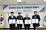 태산뉴스 이동욱 기자 | 여주도시공사와 민주노총 공공운수노조 여주도시공사지회는 12월 9일 여주도시공사 사옥에서 2025년 임금 및 단체협약 체결식을 개최했다고 밝혔다. 이번 협약은 상호 신뢰와 존중을 바탕으로 진행된 성실한 교섭의 결실로, 노사 상생과 지속 가능한 발전을 위한 중요한 발판이 될 전망이다. 공사와 노동조합은 이번 협약을 통해 직원들이 안정적인 근무여건 아래 역량을 발휘할 수 있는 환경을 조성하고, 공공기관으로서 사회적 책임을 다하기 위한 제도 개선과 협력 체계를 강화해 나갈 방침이다. 임명진 사장은 “이번 임금·단체협약은 노사 간 소통과 이해를 바탕으로 이루어낸 결실”이라며, “앞으로도 신뢰 기반의 노사 협력을 통해 시민에게 더 나은 공공서비스를 제공할 수 있도록 노력하겠다"고 밝혔다. 여주도시공사는 앞으로도 합리적인 노사관계 정착을 위해 소통과 협력을 강화하고, 시민 중심의 공기업으로서 책임과 역할을 다하기 위한 다양한 노력을 이어갈 계획이다.