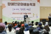 태산뉴스 이지율 기자 | 군포시는 군포시장애인종합복지관 주관으로 10월 31일 장애인센터 내 다목적실에서 2025년 장애인문화예술축제를 개최했다. 이번 축제는 2025년 경기도 장애인 문화예술진흥사업으로 선정되어 경기도와 군포시의 지원으로 장애인과 비장애인이 함께 어우러져 창의적이고 감동적인 공연과 전시가 펼쳐졌다. 하은호 시장과 시낭송동아리 ‘수리담시’회원의 시낭송 공연으로 시작한 행사는 발달장애인으로 이루어진 어울림합창단의 합창공연과 한세대학교 음악학과 학생들의 관현악 공연 등으로 이어졌다. 다채로운 공연과 함께 도예토, 퀼트, 사군자, 미술, 사진 등의 전시는 예술의 무한한 감동을 시민과 함께 나누는 뜻깊은 시간이 됐다. 특히 누구나 함께 즐길 수 있는 캘리그라피와 가죽공예 체험프로그램도 마련되어 예술의 장벽을 낮추고 참여의 폭을 넓혔다. 하은호 군포시장은 “시민 모두가 함께하는 문화예술의 장을 확장하는 계기가 되길 바란다”라며 “앞으로도 장애인 문화예술 지원에 최선을 다해 포용과 화합의 도시를 만들어가겠다”고 말했다.
