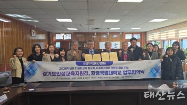 태산뉴스 김준수 기자 | 경기도안성교육지원청과 중앙대학교 다빈치 캠퍼스는 12월 2일, 안성맞춤 행복교육 지역교육협력 거버넌스 구축을 위한 업무 협약을 체결하여 상호 협력을 강화했다고 밝혔다. 협약의 주요 내용은 ▲ 안성맞춤 공유학교 프로그램 개발·운영을 위한 자원 공유, ▲ 안성 별꿈나래 거점형 늘봄센터 운영 지원, ▲ 고교학점제 교육과정 운영 활성화를 위한 협력, ▲ 중앙대 RISE 교육 사업 운영 지원 등이다. 이정우 교육장은 “지역 대학과의 협력은 안성 교육의 질을 높이는 핵심 동력”이라며 “학교·지역사회·대학이 함께 성장하는 교육협력 거버넌스를 구축하겠다”라고 말했다. 이형환 부총장은 “중앙대학교 다빈치 캠퍼스가 보유한 다양한 자원과 인프라를 활용해 안성 지역 학생의 역량 강화에 힘쓰겠다”라고 전했다.