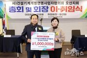 태산뉴스 이동욱 기자 | 오산시는 사단법인 건설기계개별연명사업자협의회 오산지회가 저소득 취약계층 지원을 위한 이웃돕기 성금 100만 원을 기탁했다고 밝혔다. 이번 성금은 지난 9일 오산컨벤션웨딩뷔페에서 열린 건사협 오산지회 정기총회에서 마련된 것으로, 총회 행사의 일환으로 지역사회 나눔 실천을 위해 전달됐다. 기탁된 성금은 사회복지공동모금회를 통해 오산시 관내 취약계층의 겨울나기를 돕는 데 사용될 예정이다. 이날 정기총회에서는 지난 10년간 오산지회를 이끌어온 안영용 회장에 이어 오선희 회장이 신임 회장으로 취임했다. 오선희 회장은 “앞으로도 지역사회의 일원으로서 회원들과 함께 나눔과 봉사 활동을 지속하며 따뜻한 지역사회를 만드는 데 힘쓰겠다”고 밝혔다. 행사에 참석한 이권재 오산시장은 “건사협 회원 여러분들의 노고 덕분에 오산의 경제와 산업이 더욱 활기차게 발전하고 있으며, 더욱 안전한 산업 현장이 되어 가고 있다”며 감사의 말을 전했다. 한편, 건사협은 건설기계 사업자의 권익 보호는 물론, 국토교통부가 지정한 조종사 안전교육 등 전문 안전교육을 시행하는 단체로, 건사협 오산지회는 성금 기탁과 각