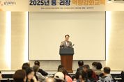 태산뉴스 이동욱 기자 | 화성특례시가 2일 푸르미르호텔 그랜드볼룸에서 ‘2025년 화성시 통·리장 역량 강화 교육’을 개최했다. 이번 교육은 신규 통·리장을 비롯해 읍·면·동 통리장단 협의회 회장 및 총무 등 170여 명을 대상으로 소통 리더십과 통·리장의 직무 및 역할 등을 주제로 진행됐다. 샤인앤컴퍼니 김은혜 전문 강사가 지역 리더로서의 소통기술 교육을 진행했으며, 전은주 강사가 신규 통·리장을 위한 직무와 역할 및 화성시의 통리장 지원 사업인 ‘스마트마을방송’ 활용 교육을 진행했다. 정명근 화성특례시장은 “내년 구청 체제 출범을 앞두고 지역 행정의 핵심 역할을 담당하는 통·리장님의 역할이 그 어느 때보다 중요하다”며 “이번 교육이 통·리장님의 활동에 실질적인 도움이 돼 특례시와 구청 체제에 걸맞은 지역 발전을 함께 이끌어가는 데 지혜와 힘을 모아 주시길 바란다”고 말했다. 한편, 화성시에는 현재 29개 읍·면·동 전역에서 964명의 통·리장이 활동하고 있으며, 이들은 복지 사각지대 발굴, 시책 전달 및 홍보, 주민등록 사실조사, 민방위대 운영, 주민 공동체 형성 등 다양한 임무를 수행하고 있다