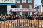 태산뉴스 이동욱 기자 | 오산시 세마동 행정복지센터는 세마동 단체연합이 11월 19일과 20일 이틀간 세마동 행정복지센터 1층 광장에서 지역 취약계층을 위한 ‘2025년 세마동 사랑의 김장담그기’ 행사를 따뜻한 분위기 속에서 진행했다고 밝혔다. 이번 김장 나눔 행사는 19일 김장 속재료 준비를 시작으로, 20일 속 채우기와 포장 등 본 작업이 이어졌으며, 세마동 단체연합은 ‘손끝의 온정을 담아 전합니다’라는 슬로건 아래 정성을 모아 행사를 진행했다. 올해 마련된 김장은 총 480포기 규모로, 세마동 관내 독거노인, 저소득층, 한부모 가정 등 어려운 이웃들에게 20일 당일 전달됐다. 신정순 세마동 새마을부녀회장은 “김장 나눔은 세마동 주민들이 마음을 모아 서로를 돌보는 뜻깊은 시간”이라며 “작은 정성이지만 필요한 이웃들에게 따뜻함이 전해지길 바란다”고 말했다. 유미정 세마동장은 “김장담그기 행사는 세마동 주민들의 마음이 모여 만들어진 정성의 상징”이라며 “정성껏 담근 김치가 겨울을 앞둔 이웃들에게 큰 힘이 되길 바란다”고 전했다.