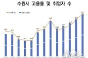 태산뉴스 이동욱 기자 | 수원에서 따뜻한 고용 훈풍이 불고 있다. 일자리 정책이 성공적인 결실을 맺고 있다는 것이 역대 최고의 지역 고용률 기록으로 드러났다. 첨단 산업 분야의 기업 유치와 지역 기업의 성장을 지원하는 정책들이 우수한 미래 일자리를 만들고, 지역상권 활성화를 자양분으로 지역과 주민이 상생하는 일자리들이 활성화된 덕분이다. 특히 수원시는 맞춤형 일자리 서비스를 지원하고, 취약 노동자들의 안전망을 구축하는 등 일자리와 노동 권익의 균형을 맞추는 공공의 노력을 강화해 왔다. ◇수원시에서 ‘고용의 봄’이 시작됐다 통계청이 발표한 2025년 상반기 수원시 고용률은 64.1%다. 수원시에 살고 있는 15세 이상 시민 100명 중 64명이 수입을 목적으로 일을 하고 있다는 의미다. 이 같은 고용률은 역대 최고치 기록이다. 국가통계포털(KOSIS)에서 공개하고 있는 26번의 조사 결과 중 가장 높다. 전년 동기인 2024년 상반기 61.5%, 직전 반기인 2024년 하반기 62.9%에서 지속 상승 중이다. 수원시 고용률이 60% 중반을 기록한 것은 처음이다. 통계청이 반기마다 실시하는 지역별고용조