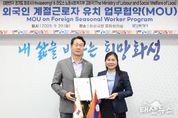 태산뉴스 이동욱 기자 | 화성특례시가 지난 29일 라오스 노동사회복지부 고용국(The Minisry of Labour and Social Welfare of Laos)과 외국인 계절근로자 유치 업무협약(MOU)을 체결했다. 이날 시청 중앙회의실에서 열린 협약식에는 정명근 화성특례시장, 아누선 캄싱사밧 라오스 노동사회복지부 고용국장, 소이사완 우타폰 노동사회복지부 해외송출부차장 등이 참석했다. 양 기관은 추후 화성특례시의 농촌 고령화로 인한 파종기·수확기 등 농번기 인력난 문제를 해소하기 위해 안정적인 외국인 계절근로자를 파견하고 유치하는 데 협력하기로 했다. 시는 입국한 외국인 계절근로자에 대한 근로조건 준수 및 인권 보호, 무단 이탈 방지를 위한 수시 점검 등 역할을 맡으며, 라오스 노동사회복지부 고용국은 적합한 근로자 송출 및 근로자 대상 교육 등 출국 전까지 필요한 라오스에서의 행정절차를 지원한다. 협약에 따라 시는 올해 199명의 외국인 계절근로자를 배정받을 예정으로, 이들은 2026년 상반기(3~4월)와 하반기(9월~10월)에 입국해 각 농가에 배치될 예정이다. 정명근 화성특례
