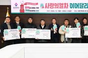 태산뉴스 이동욱 기자 | 2026년 붉은 말의 해, 용인특례시 사랑의 열차 이어달리기에 지역사회 따뜻한 나눔의 손길이 이어지고 있다. ‘사랑의 열차 이어달리기’는 용인의 대표 연말연시 이웃돕기 운동이다. 시는 지난해 12월 3일 시청 컨벤션홀에서 ‘희망 2026나눔캠페인 사랑의 온도탑제막식 및 사랑의 열차 이어달리기 발대식’을 열었다. ‘사랑의 열차 이어달리기’는 2월 6일까지 총 68일 동안 이웃돕기 성금 14억 원 모금을 목표로 이뤄진다. 삼성노블라이프 주식회사가 지난해 12월 23일 바자회 수익금 534만9000원을 기탁했다. 같은 날 에버찜질사우나는 성금 500만원을, ㈜토오텍 성금 200만원을, ㈜액션테크는 627만원 상당의 소화기 230대를 시에 기탁했다. 또 ㈜경자네식구들은 350만원 상당의 밀키트 1,000개를, 용인시 기업지원과는 성금 100만원을 전달했다. 수지구청 직장어린이집은 지난해 12월 29일 어려운 이웃에 전달해 달라며 라면 366개를 기탁했다. 이영애 원장은 “아이들이 직접 보고 느끼는 나눔의 기쁨을 통해 진짜 크리스마스의 의미를 느낄 수 있었을 것”이라고 했다. &nb