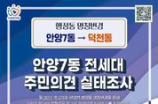 태산뉴스 이동욱 기자 | 행정동 명칭 변경 사업을 추진 중인 안양시가 만안구 안양7동의 행정동 명칭 변경을 위해 올해 12월 1일부터 내년 1월 31일까지 해당 동 전 세대를 대상으로 주민의견 실태조사를 실시한다고 1일 밝혔다. 이번 주민의견 실태조사는 안양7동의 행정동 명칭을 ‘덕천동’으로 변경하는 것에 대한 찬반 의견 조사다. 안양7동에 거주하는 전체 세대 중 60% 이상이 참여하고, 참여 세대의 과반수가 찬성할 경우 시는 명칭 변경을 추진할 예정이다. 조사방법은 올해 12월 1일부터 2026년 1월 31일까지 시 홈페이지를 통해 비대면 조사를 진행하고, 12월 18일부터 2026년 1월 31일까지 안양7동 행정동명칭변경추진위원회가 각 세대 방문조사를 병행하게 된다. 덕천(德泉)동은 어린이들이 샘물 솟듯이 씩씩하게 자라서 나라에 큰 일꾼이 되기를 바라는 뜻으로, 큰 덕(德)에 샘 천(泉)을 취해 붙여진 옛 지명이다. 시는 이에 앞서 지난 9월 12일부터 9월 30일까지 안양7동 주민들을 대상으로 행정동 명칭에 대한 선호도 조사를 진행했고, 조사에 참여한 646세대의 주민 중 52.9