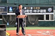 태산뉴스 이동욱 기자 | 수원특례시의회는 10월 19일 황구지천야구장에서 열린 ‘제10회 수원컵 전국 사회인 야구대회 개회식’에 참석해 선수들을 격려했다. 이번 대회는 경기일보가 주최하고 수원시야구소프트볼협회가 주관했으며, 전국 사회인 44개 팀이 참가해 뜨거운 열정 속에 경기를 펼쳤다. 이날 행사에는 이재식 의장, 김정렬 부의장을 비롯한 오세철 예산결산특별위원장, 김동은 의원이 함께해 선수단을 응원하며, 전국 각지에서 모인 야구 동호인들과 교류의 시간을 가졌다. 이재식 의장은 축사에서 “직장과 가정을 오가며 바쁜 일상 속에서도 야구에 대한 열정으로 최선을 다하는 선수 여러분께 진심 어린 박수를 보낸다”며 “이번 대회가 지역과 세대를 넘어 우정을 나누는 축제가 되길 바란다.”고 말했다.
