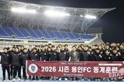 태산뉴스 이동욱 기자 | 이상일 용인특례시장은 6일 오후 미르스타디움 회의실에서 전지훈련을 앞둔 용인FC 선수단을 격려했다. 이 시장은 이날 선수들과 코치진을 만나 전지훈련 준비 상황을 확인하고, K리그2를 향한 첫걸음을 시작한 선수들에게 응원의 메시지를 전했다. 이상일 시장은 “창단식에서 이야기했듯이 미래는 그냥 오는 것이 아니고 우리가 함께 만들어 가는 것”이라며 “시장으로 취임한 뒤 만든 시정 슬로건이 ‘함께 만드는 미래 용인 르네상스’인데, 민선8기 용인시가 시민과 함께 반도체 등 여러 분야에서 르네상스적 발전을 이루고 있는데 시민프로축구단 창단도 시민과 함께 스포츠 진흥을 위해 한 것인 만큼 선수단이 감독님 등과 함께 용인FC의 미래를 잘 만들어 주기를 바란다”고 말했다. 이 시장은 “용인에 반도체 프로젝트가 추진되면서 투자액만 1천조원에 달해 ‘천조개벽’이라는 말이 나올 정도로 르네상스 시대를 열고 있다”며 “대한민국 1년 예산이 728조원인데, 용인 반도체 프로젝트에만 투자액이 1천조원 계획돼 있고, 앞으로 반도체 관련 기업들이 용인에 입주하면 시의 재정은 더욱 좋아질 것이므로 용인FC에 대한 투자