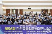 태산뉴스 이지율 기자 | 용인특례시는 10일 시청 컨벤션홀에서 민족통일 용인특례시협의회 주관으로 ‘민족통일 용인특례시대회와 제56회 한민족통일문화제전 시상식’이 열렸다고 밝혔다. 이날 행사는 한반도의 평화와 통일을 주제로 한 글짓기·웹툰·포스터·사진 공모전의 입상작을 시상하고, 유공회원에게 표창을 수여하고자 마련됐다. 민족통일 용인특례시협의회는 1981년 창립한 단체로 매년 태극기 나눔을 비롯해 지역사회 통일운동 의식 제고 등을 위한 다양한 활동을 벌이고 있다. 이날 협의회는 홍보자료 시청, 통일 관련 동영상과 남북 언어 차이에 대한 학습자료를 시청하고 간단한 통일 퀴즈대회를 거쳐 우수 작품 3개를 낭독했다. 이어진 시상식에서는 용인특례시장상 3명 등 총 36명이 수상의 영예를 안았다. 유한종 민족통일 용인특례시협의회장은 “민족의 염원인 한반도 평화통일을 위해 어려운 여건 속에서도 적극 지원해 주시는 이상일 시장님께 감사드린다”며 “대한민국 통일의 그 날이 올 때까지 협의회 회원의 뜻을 한데 모아 더욱 적극 활동하겠다”고 했다. 이상일 시장은 “대한민국이 한국전쟁의 비극을