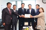 태산뉴스 김준수 기자 | 경기도의회 교섭단체인 국민의힘과 더불어민주당이 다시 한번 ‘지방의회법 제정’에 뜻을 모았다. 경기도의회 국민의힘(대표의원 백현종, 구리1)과 더불어민주당(대표의원 최종현, 수원7)은 21일, 경기도 국정감사 차 경기도청을 방문한 국회 행정안전위원회 신정훈 위원장을 만나 ‘지방의회 제도개선을 위한 '지방의회법' 제정 건의안’을 제출했다. 이 자리에는 국민의힘에서 이용호 총괄수석부대표(비례)와 이한국 수석정책위원장(파주4), 임상오 안전행정위원장(동두천2)이 더불어민주당에서 최종현 대표의원과 전자영 수석대변인(용인4)이 참석했다. 현장에서는 지방의회법 제정의 필요성에 대한 설명과 함께 세부 사항으로 ▲지방의회 운영 관련 자체 예산편성 및 조직관리권 부여 근거 필요 ▲지방의회 사무기구 자체 감사 및 조사권 반영 근거 필요 ▲현행 정책지원관(2의원 1지원관) 제도를 별정직 보좌관제로 전환(1의원 1보좌관제) 등에 관한 건의가 이뤄졌다. 이용호 총괄수석부대표는 “지방의회법은 실질적으로 지방자치단체를 견제하고 감시할 수 있는 최소한의 제도적 기반”이라며 “그 최소한의 장치가 있어야만