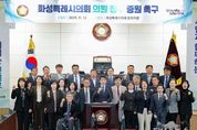 태산뉴스 이지율 기자 | 화성특례시의회는 12일 제246회 제2차 정례회 본회의에서 '화성특례시의회 의원 정수 관련 제도 개선 촉구 건의안'을 원안 가결했다. 이번 안건은 배정수 의장의 대표 발의했으며, 25명의 전체 의원 모두가 필요성에 공감해 한마음으로 추진했다는 점에서, 지방의회 의원 정수산정 방식의 구조적 문제를 개선해야 한다는 의지를 담고 있다. 본회의 산회 후에는 의원들이 함께 건의안 낭독 퍼포먼스를 진행하며 제도 개선의 필요성과 취지를 시민들에게 공유했다. 전국 최고 수준의 의원 1인당 인구 부담 화성특례시의회는 현재 의원 1인당 약 4만 2천 명의 시민을 대표하고 있어 전국 평균(약 1만 7천 명)과 경기도 평균(약 3만 명)을 크게 웃도는 상황에 놓여 있다. 이는 특례시 중에서도 가장 높은 수준으로, 급격한 인구 증가에도 불구하고 의회 구성은 사실상 정체돼 있어 대표성과 감시 기능이 충분히 발휘되지 못하는 구조적 한계를 보여주고 있다. 특례시 전환 이후 확대된 행정수요 반영 필요 화성특례시는 인구 100만을 넘어 특례시로 지정된 이후 도시 규모와 행정수요가 빠르게 확대되