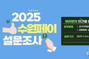 태산뉴스 이동욱 기자 | 수원특례시가 24일부터 12월 5일까지 ‘2025년 수원페이 사용자 설문조사’를 한다. 설문 항목은 ▲사용 실태(사용 이유·주기, 월평균 충전액) ▲개선할 사항(적정 인센티브, 불편 사항) ▲만족도(가계 기여 여부, 소상공인소득증대 기여 여부) 등이다. 새빛톡톡 설문투표 게시판에서 설문에 참여할 수 있다. 경기지역화폐 앱의 팝업창을 클릭하면 설문조사 웹페이지로 연결된다. 조사 결과는 향후 수원페이 발행·운영 계획을 수립할 때 기초 자료로 활용할 예정이다. 2025년 10월 말 기준 수원페이 사용자는 91만 4800여 명이다. 수원시 관계자는 “수원페이 사용자의 소중한 의견을 반영해 더 나은 지역화폐 운영계획을 수립하겠다”며 “수원페이 사용자들이 적극적으로 설문조사에 참여해 주시길 바란다”고 말했다.