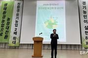태산뉴스 김준수 기자 | 경기도의회 농정해양위원회 방성환 위원장(국민의힘, 성남5)은 10일 YBM연수원에서 열린 ‘경기도친환경경농업인연합회 연구사업 보고회 및 송년회’에 참석해 축사를 전하며 친환경농업 발전을 위해 노력해온 농업인들에게 깊은 감사의 뜻을 전했다. 이번 보고회는 연합회가 2025년도 추진한 연구사업 성과를 공유하고 도내 친환경농업의 향후 방향을 논의하기 위해 마련된 자리로, 농업인과 연구진, 기관 관계자 등 300여 명이 참석했다. 방 위원장은 축사에서 “친환경농업은 탄소 저감과 토양·수질 개선 등 환경보전 효과가 크며, 지속가능한 농업의 미래를 여는 핵심 정책”이라고 강조했다. 이어 “친환경농산물은 도민의 건강뿐 아니라 학생 급식에 안전하고 품질 좋은 농산물을 공급하는 데 매우 중요한 기반”이라며, “경기도의회 농정해양위원회는 친환경농업이 더욱 확대되고 농가경영이 안정될 수 있도록 정책·예산 지원을 지속하겠다”라고 밝혔다. 또한 방 위원장은 이번 보고회가 한 해 동안의 성과를 공유하고 친환경농업의 발전 전략을 함께 모색하는 뜻깊은 자리라고 평가하며, “친환경농업은 경기도 농정의 중