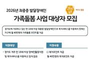 태산뉴스 김준수 기자 | 경기도가 2026년 최중증 발달장애인 가족돌봄 사업 대상자 145가구를 12월 2일까지 모집한다. 최중증 발달장애인이란 도전적 행동이 심하고 일상생활에 제약을 지닌 통합돌봄이 필요한 발달장애인이다. 경기도는 돌봄이 필요한 모든 도민들을 대상으로 누구나, 언제나, 어디나 빈틈없는 돌봄을 제공하는 360도 돌봄사업을 하고 있다. 최중증 발달장애인 가족돌봄 사업은 이 가운데 ‘어디나 돌봄’ 사업의 하나로 진행한다. 2024년 4월 처음 가족돌봄 사업을 시행한 이래 매달 210가구에 월 40만 원씩 돌봄포인트를 제공해 생필품 구입부터 여가활동 지원까지 다양한 부분에서 사용하여 장애인 당사자와 가족의 생활안정에 기여하고 있다. 2026년 최중증 발달장애인 가족돌봄 사업의 지원 대상은 경기도에서 거주하는 복지관, 직업재활서비스 등 복지서비스 미이용으로 돌봄사각지대에 놓인 만 18세 이상 발달장애인이다. 선정 시 월 40만 원 가족돌봄포인트를 1년간 지원하고 지속적인 모니터링으로 복지서비스와 대상자를 연계하는 서비스를 제공한다. 2026년 모집인원은 145명으로 전년과 다르게 모집인원을