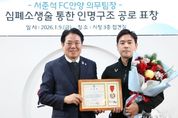 태산뉴스 이동욱 기자 | 안양시민프로축구단 FC안양의 서준석 의무팀장이 위급한 상황에서 신속한 심폐소생술로 시민의 생명을 구한 공로로 안양시장 표창을 받았다. 안양시는 9일 오후 4시10분 시청 3층 접견실에서 표창 수여식을 열고 서 팀장에게 표창을 수여했다. 서 팀장은 지난해 12월 26일 안양종합운동장 인근에서 점심식사를 하던 중 식당 앞에서 심정지로 쓰러진 시민을 발견하고 즉각 심폐소생술(CPR)을 실시했으며, 구조대가 도착할 때까지 침착하게 응급조치를 이어가 소중한 생명을 구하는 데 결정적인 역할을 했다. 2014년부터 FC안양에 재직 중인 서 팀장은 평소 선수단의 건강과 안전을 책임지는 의료지원 업무를 수행해 왔으며, 이번 위급한 상황에서도 전문성과 사명감을 바탕으로 인명 구조에 나서 사회에 귀감이 되는 행동을 보여줬다. 서 팀장은 “현장에서 함께 신고하고 도움을 준 동료들 덕분에 소중한 생명을 지킬 수 있었다”며 “앞으로도 그라운드 안에서는 선수들의 건강을, 그라운드 밖에서는 시민의 생명을 지키는 데 최선을 다하겠다”고 소감을 밝혔다. 최대호 안양시장은 “갑작스러운 상황에서도