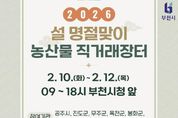 태산뉴스 이동욱 기자 | 부천시는 설 명절을 앞두고 2월 10일부터 12일까지 시청 정문 앞에서 ‘2026년 설 명절맞이 농산물 직거래장터’를 연다. 이번 직거래장터에는 공주시, 무주군, 옥천군, 진도군, 봉화군 등 자매결연 도시를 포함해 서산시, 안동시, 부천 지역 전통시장(한신시장, 제일시장), 팔도향우회(강원·호남)가 함께한다. 각 지역 참가 단체는 직접 재배한 농수산물과 특산품을 준비해, 시민들이 설 차례상과 선물용으로 활용할 수 있도록 다양한 성수품을 선보일 예정이다. 직거래장터에서는 사과, 알밤, 버섯 등 신선 농산물과 미역, 다시마, 김, 멸치, 젓갈 등 수산 가공품, 된장, 고추장, 참기름, 한과 등 지역 특산품이 판매된다. 판매 품목은 품질이 우수한 우리 농산물로, 시중가보다 평균 10% 이상 저렴하게 제공된다. 이수미 부천시 도시농업과장은 “이번 직거래장터는 설 명절을 앞두고 시민들이 전국의 다양한 농특산물을 한자리에서 만날 수 있도록 마련한 자리”라며 “가격 부담은 줄이고 명절의 따뜻한 정취는 더할 수 있도록 준비한 만큼, 많은 시민이 함께 즐기길 바란다”고 말했다.