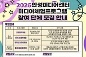 태산뉴스 이동욱 기자 | 안성미디어센터는 지역 어린이와 청소년이 미디어를 쉽고 재미있게 접할 수 있도록 ‘2026년 미디어체험프로그램’에 참여할 관내 어린이집, 유치원, 학교 등 단체를 모집한다고 밝혔다. 이번 프로그램은 아이들이 영상과 소리를 직접 다뤄보며 미디어의 원리를 이해하고 창의력과 표현력을 키울 수 있도록 기획된 체험형 교육이다. 영상·라디오 스튜디오를 활용해 진행되며, 공간·대상별 직업체험과 미디어 놀이 중심의 구성으로 어린이와 청소년이 즐겁게 참여할 수 있는 것이 특징이다. 2026년에는 ▲크로마키 체험(우주·세계여행 영상 촬영) ▲TV 뉴스 제작 체험 ▲뮤직 차트 방송 제작 ▲폴리(효과음) 체험 등 다양한 프로그램이 마련된다. 각 프로그램은 연령대에 맞춰 구성되며, 방송 직업 탐색과 실습 중심 활동을 통해 참여자의 흥미와 몰입도를 높인다. 모집 대상은 안성시 관내 6세 이상 어린이부터 초·중·고등학생이 포함된 어린이집, 유치원, 학교, 기관 등 단체로, 최소 10명에서 최대 30명 내외의 15개 팀을 선착순 모집한다. 체험비는 전액 무료이며, 프로그램은 오는 2월부터 5월까지 매주 수요일 오전에