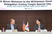 태산뉴스 이지율 기자 | 이상일 용인특례시장이 13일 용인의 자매도시인 미국 텍사스주 윌리엄슨카운티의 대표단과 만나 양 도시의 발전을 위한 협력 방안을 논의했다. 이날 시청 접견실에서 이 시장은 스티븐 스넬(Steven Snell) 윌리엄슨카운티장과 러스 볼즈(Russ Boles) 윌리엄슨카운티 커미셔너, 데이브 포터(Dave Porter) 윌리엄슨카운티 경제개발파트너십 전무이사를 만나 경제와 산업, 교육 등 다양한 분야에 대해 의견을 나눴다. 이날 이상일 시장을 만난 스티븐 스넬 윌리엄슨카운티장은 전임자인 빌 그래벨(Bill Gravell) 윌리엄슨카운티장에 이어 지난 4월 신임 윌리엄슨카운티장으로 취임했다. 이상일 시장은 “양 도시는 도시 이름을 붙인 명예도로명을 부여하면서 우정을 쌓고, 교류협력을 활발하게 하고 있다”며 “윌리엄슨카운티 대표단과 텍사스 주립대학교 관계자들이 용인에 있는 단국대학교 관계자를 만나 협력관계 구축에 대한 논의를 진행하는 것으로 알고 있는 데 양 도시에 있는 대학이 교류하는 것은 매우 뜻 깊은 일”이라고 말했다. 이 시장은 “윌리엄슨카운티에는 첨단산업 관련 기업들의 입