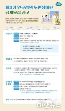 경기도, '제3기 인구정책 도민참여단' 100명 모집…정책·인식 개선활동