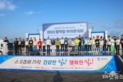 태산뉴스 이지율 기자 | 평택시의회는 19일, 평택항 엠에스로지스틱 일원(평택시 포승읍 신영리)에서 개최된‘2025 평택항 마라톤대회’에 참석해 전국에서 모인 마라토너들의 열정을 응원했다. 이날 행사에는 강정구 평택시의회의장을 비롯한 시의원이 참석하고 평택시 체육회장, 평택시육상연맹 관계자 등 내외빈과 참가자 약 7,300여명이 함께했다. 이번 평택항 마라톤대회는 스트레칭으로 몸을 푼 뒤 하프코스(21.0975km)·10km,·5km 3개 부문으로 나눠 출발했다. 하프코스는 평택당진항 자유무역지역을 지나 평택항 서부두 내항방면을 거쳐 퓨리나 평택공장까지, 10km구간은 서부두 해안도로까지, 5km구간은 평택항 서부두 내항방면까지 각각 반환점으로 삼는 코스다. 강정구 의장은 “마라토너가 달리는 이유는 끝이 아닌 여정 그 자체에 있기에 중요한 것은 완주가 아니라 그 과정 속에서 자신을 발견하는 일”이라며, “평택시의회도 건강한 공동체 속에서 도전의 기쁨을 누릴 수 있도록 생활체육 기반을 튼튼히 다지는 데 최선을 다하겠다”라고 전했다. 한편 올해로 25회를 맞는‘2025 평택항 마라톤대회’는