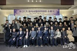 태산뉴스 이동욱 기자 | 안산시 상록구는 지난 2일 한국호텔관광전문학교 미래관 컨벤션홀에서 ‘제31기 상록구 외식사업 아카데미 수료식’을 개최했다고 3일 밝혔다. 이날 수료식에서는 박종홍 상록구청장을 비롯해 이원영 한국호텔관광전문학교 학장 및 외식업계 전문가 등이 참석한 가운데 교육 과정을 마친 25명의 수료생에게 수료증과 인증패가 수여됐다. 외식사업 아카데미는 경기 불황 등으로 어려움을 겪는 외식업 종사자들의 역량과 전문성을 강화하고, 급변하는 소비환경에 능동적으로 대응할 기회를 제공하기 위해 마련된 교육프로그램이다. 교육생들은 지난 9월 2일부터 주 1회씩 총 12주 과정으로 한식, 양식, 디저트 등 대표 메뉴 조리실습과 외식경영에 필요한 세무·노무·마케팅 교육 등 실무에 바로 적용할 수 있는 내용을 학습했다. 교육에 참여한 한 수료생은 “이번 아카데미로 외식업 운영을 보다 체계적으로 바라볼 수 있게 됐다”며 소감을 밝혔다. 박종홍 상록구청장은 “이번 교육으로 교육생들이 급변하는 소비 트렌드에 대응할 수 있는 역량을 갖출 수 있는 계기가 됐길 바란다”며 “수료 이후에도 지속적인 네트