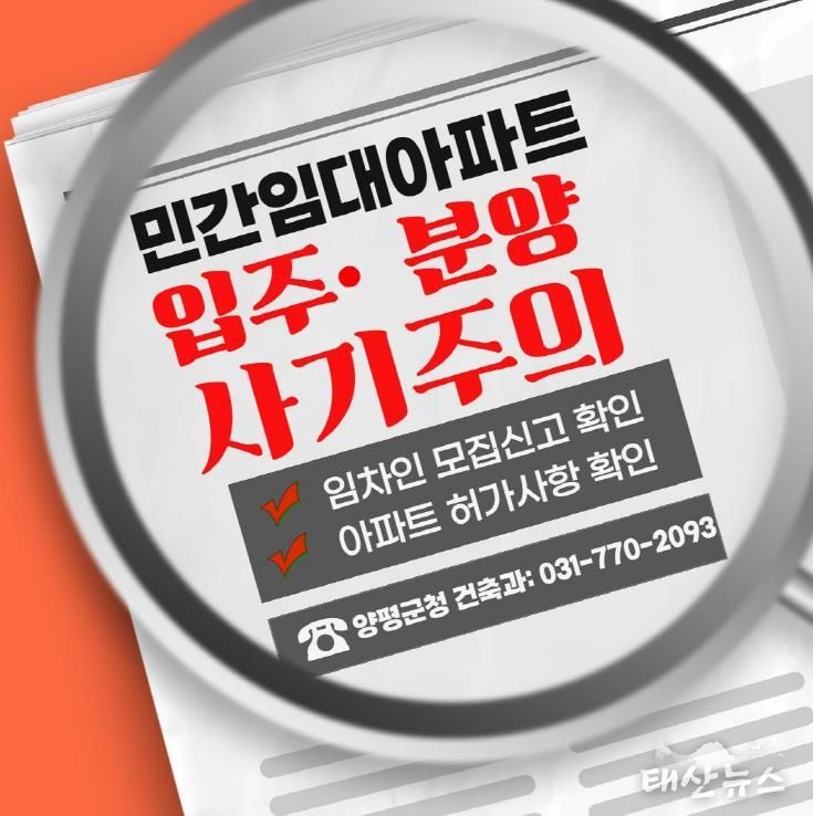 태산뉴스 이동욱 기자 | 양평군은 최근 관내에서 장기일반 민간임대주택 투자와 관련한 문의가 증가함에 따라 군민들의 주의를 당부했다.