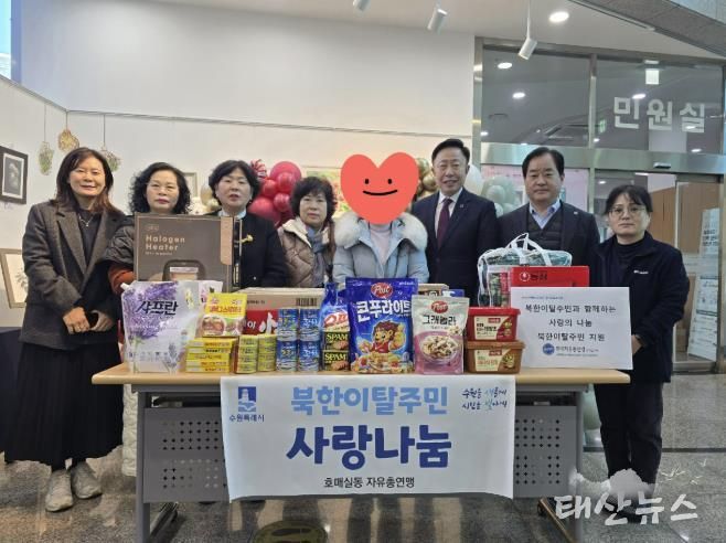 태산뉴스 이동욱 기자 | 권선구 호매실동 한국자유총연맹은 지난 17일, 연말연시를 맞아 관내 북한이탈주민에게 따뜻한 사랑 나눔 선물을 전달했다.
