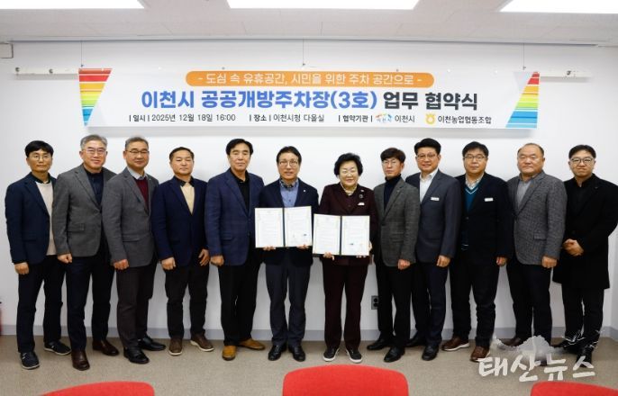이천시는 12월 18일, 이천시장과 이천농업협동조합장이 참석한 가운데 공공개방주차장 조성 및 운영에 관한 협약식을 개최하고, 중리동 496-12번지 일원에 공공개방주차장을 조성하기로 했다.