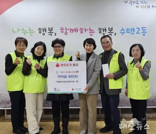 태산뉴스 이동욱 기자 | 구리시 수택2동 행정복지센터는 지난 18일 구리자원봉사홍보단봉사회로부터 저소득 청소년들의 안정적인 학업 지원을 위한 장학금 60만 원을 전달받았다고 밝혔다.