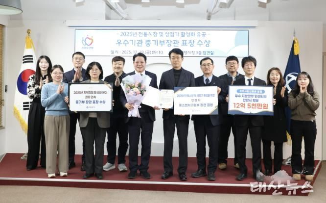 태산뉴스 이동욱 기자 | 안양시는 중소벤처기업부가 주관한 ‘2025년 전통시장 및 상점가 활성화 유공’ 포상에서 우수 지자체로 선정돼 중소벤처기업부 장관 표창을 수상했다고 19일 밝혔다.